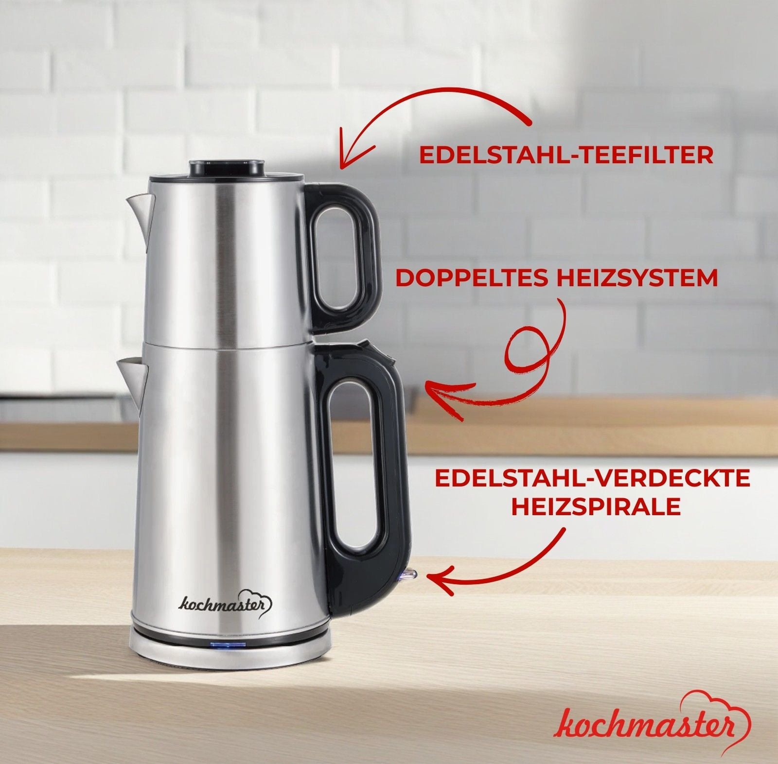 Experience first-class tea enjoyment with the Efendi Elegance Steel tea kettle . With an impressive 1800W power, it boils water in no time, so you can enjoy your favorite tea or coffee quickly.